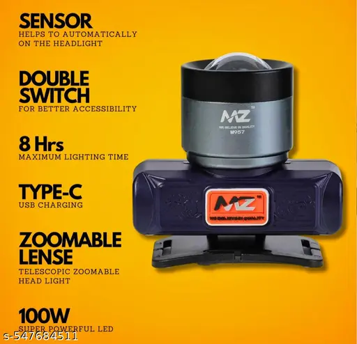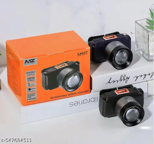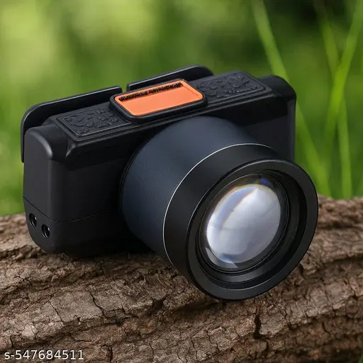 Rechargeable LED Headlamp. Design : DSLR Inspired The headlamp is designed with inspiration from DSLR (Digital Single-Lens Reflex) cameras, suggesting a modern and sleek appearance. Zoomable Lens with Sensor The headlamp is equipped with a zoomable lens, allowing users to adjust the focus of the light beam as needed. The inclusion of a sensor implies that there may bea technology that adjusts the light output based on surrounding conditions. Power: 100W This headlamp provides a powerful 100 watts of illumination, which suggests it can deliver a bright and focused beam of light. Double On/Off Switch The inclusion ofa double on/off switch indicates that there might be separate controls for different lighting modes or intensities, providing users with flexibility in adjusting the brightness. Battery Duration: 6 Hours The headlamp offers a substantial 6 hours of continuous use, which is beneficial for extended outdoor activities or situations where a long-lasting light source is essential. Battery Recharge Cycle: 350+ The battery in the headlamp is designed for longevity, with a specified recharge cycle of 350 or more. This suggests that the battery is durable and can be recharged numerous times before needing replacement. It’s important to note that specific details about the product, such as the type of battery used, the range of the zoomable lens, and any additional feature